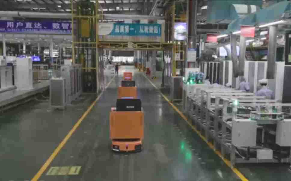 为车载冰箱物流配送打造的智能解决方案,,包含产中物流通过潜伏举升AMR搬运至线边,,产后成品物流智能仓储,,,流程包含产中物流智能齐套入库,,,线边安灯叫料AMR智能配送至线边,,,成品入库、、、出库,,,,通过无人堆高车机器人,,,智能仓储管理替代人工作业管理,,实现更高存储、、、更高效率、、、更具柔性化的解决方案。。。
